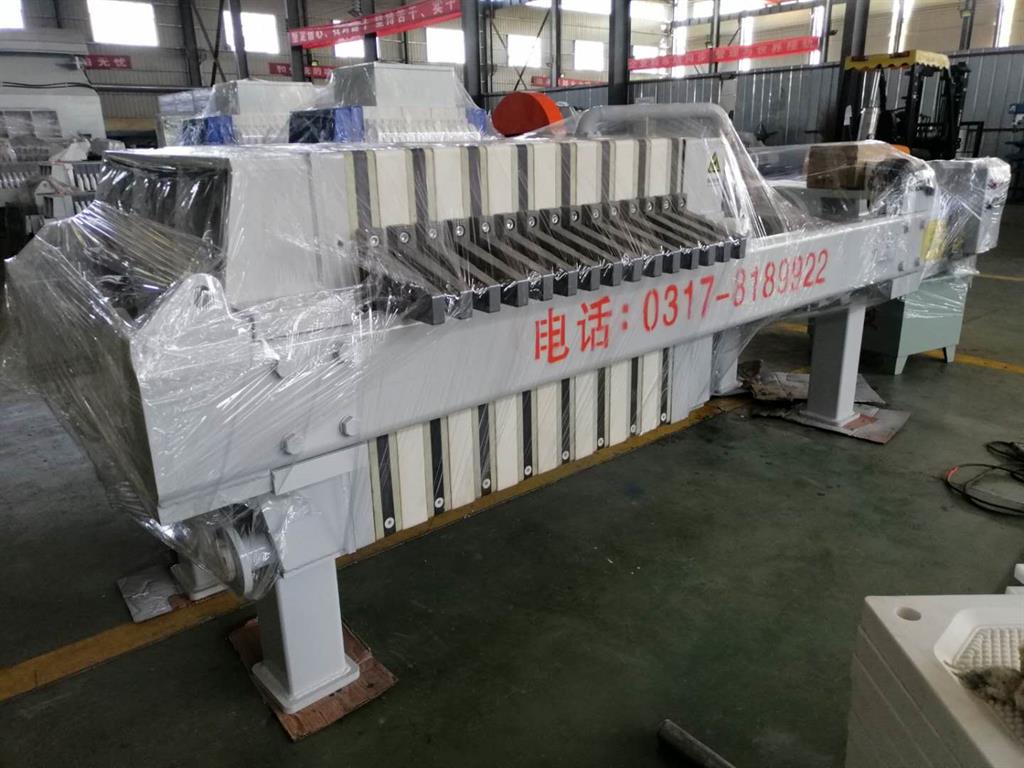 箱式壓濾機的濾板厚度約為60-85mm,每臺壓濾機的濾板為方形。然后將壓濾機濾板的兩側上下減少40mm,直到凹面。凹痕深度一般大于25mm,且程度不全是8mm高的凸出物,可以是圓形或條狀。也是說,壓濾機的濾板可以與整個過濾過程中產生的濾餅再次接觸,以支撐濾餅